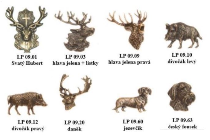 Poľovnícke odznaky na klobúk či klopu, rôzne motívy. Jednobodové zapínanie.